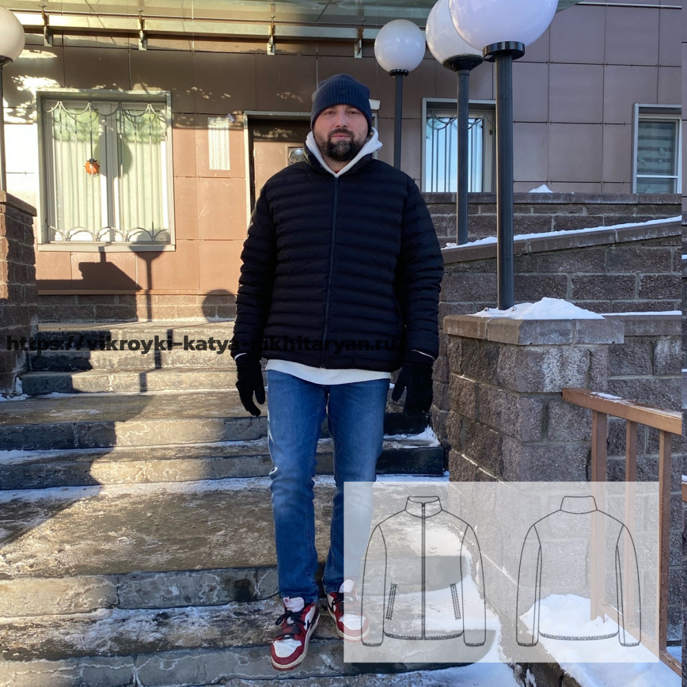 Мужская выкройка куртки рассчитана на утеплитель 100-150 гр. Куртка свободного объёма (прибавка к ОГ 26 см), прямого силуэта, длиной до линии бедер, на утеплителе (100-150 гр) и подкладке. Застежка центральная молнию, Перед с прорезным карманами на молнии. Рукава втачные двухшовные с нижним и локтевым швами. Нижний срез рукава обработан резинкой. Куртка по линии низа для прилегания оформлена резинкой. Воротник стойка. Размер: 44, 46, 48, 50, 52, 54, 56, 58, 60, 62, 64 (44-64) в одном файле и без припусков на швы. Материал: -Курточная ткань (44-48) -240 см, (50-56) -270 см, (58-64) -290см, при ширине ткани 150 см -Утеплитель 100-150 гр (44-64) -220 см, при ширине ткани 150 см -Подкладочная ткань (44-64) -180 см, при ширине ткани 150 см. -молния 1 шт (44-50р) - 70 см, (52-56р) - 75 см, (58-64р) - 80 см -молния 2шт (44-64) - 20 см Прибавка по груди 26 см |