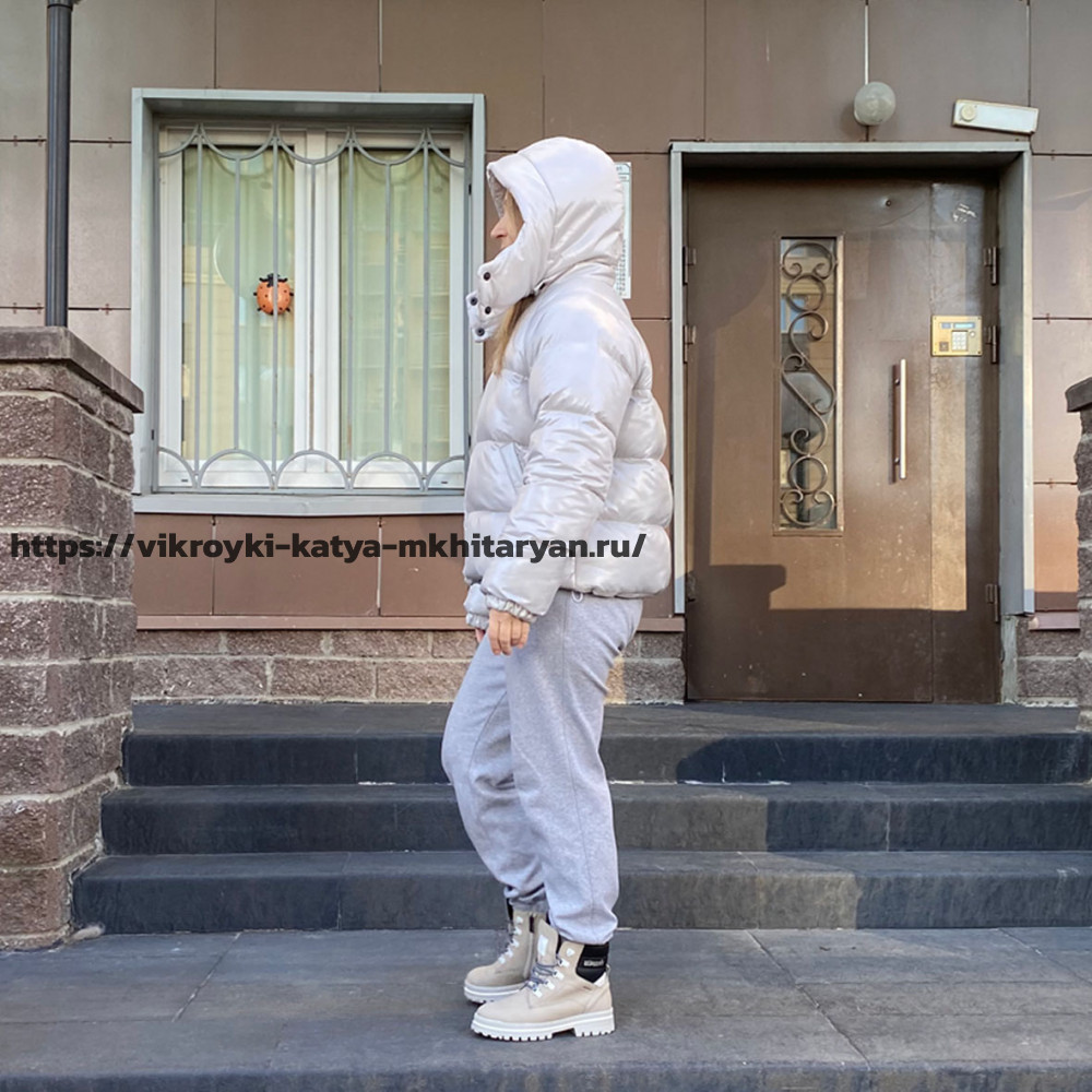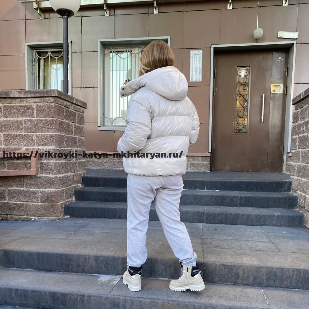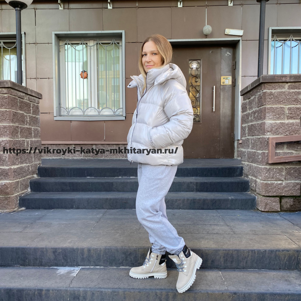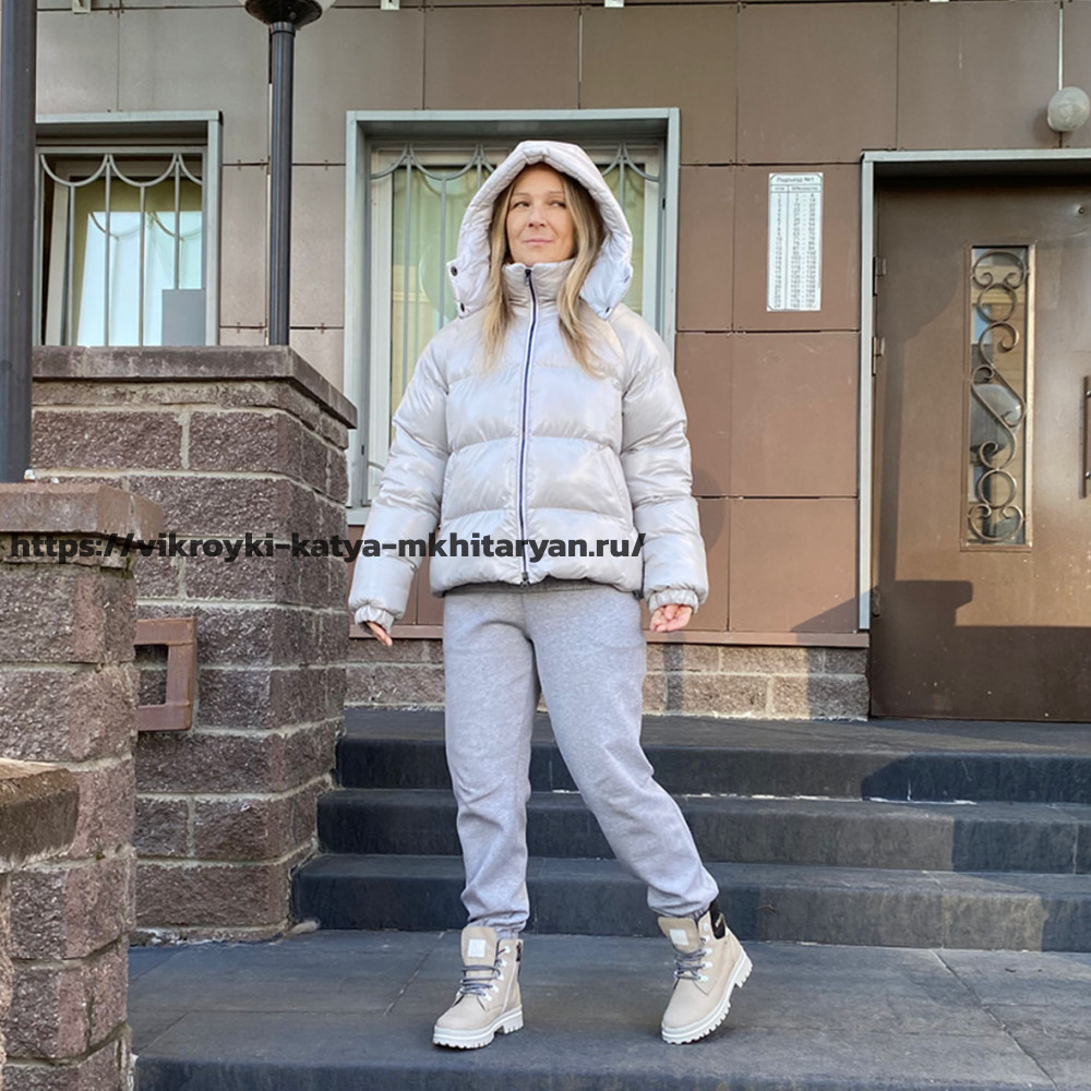 Выкройка женского укороченного пуховика Выкройка рассчитана на курточные ткани плюс утеплитель 100 гр, плюс искусственный пух, плюс подкладочная ткань . Можно заменить пух и утеплитель на объемный утеплитель 200-250 гр. Пуховик умеренного объема (прибавка к обхвату груди 30 см, весь объем забирает пух), прямого силуэта. с горизонтальной широкой стежкой. Рукав реглан на мажете с резинкой. На полочке расположены прорезные карманы с листочкой. Воротник – стойка. Капюшон двухшовный, съемный, крепится к жилетке на кнопки к планке. Застежка центральная на молнию. Изделие на подкладке. По низу куртки утяжка на шляпную резинку и 2 фиксатора. Длина изделия немного не доходит до бедер. Рекомендуемая ширина стежки 13 см. Размеры 40, 42, 44, 46, 48, 50, 52 (40-52) в одном файле и без припусков на швы. 52, 54, 56, 58. 60, 62, 64 (52-64) в одном файле и без припусков на швы Расход материалов: -Курточные ткани (40-44р) -240см, (46-48р) -250см, (50-52р) - 270 см, (52-54р) -290см, (56-58р) -300см, (60-64р) - 320 см, при ширине ткани 150 см -Подкладочная ткань (40-52р) - 150 см, (52--64р) - 160 см, при ширине ткани 150 см -Утеплитель 100гр (40-52р) 230 см , (54-64р)-250 см, при ширине ткани 150 см -Пух примерно 200-300 гр -Молния 65-70 см -Резинка 3 см 50-55 см -Люверсы 2 шт, шляпная резинка 110-160 см На фото Катя, обхваты 91-72-100, по параметрам ближе размер 46. На фото сшит размер 46 из курточной ткани монклер на утеплителе найс 100 гр и лебяжьем пухе. |